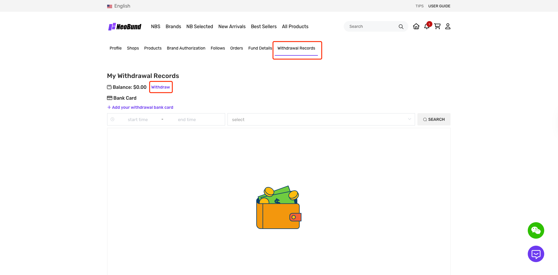万里汇账户目前暂不支持银行或其他账户直接充值,您只能先在其他电商平台进行收款(TIKTOK AMAZON等等)后才能对NeoBund订单进行支付。如果您还没有万里汇账户,请点击“点击这里”注册万里汇账户,可以享受更多优惠。