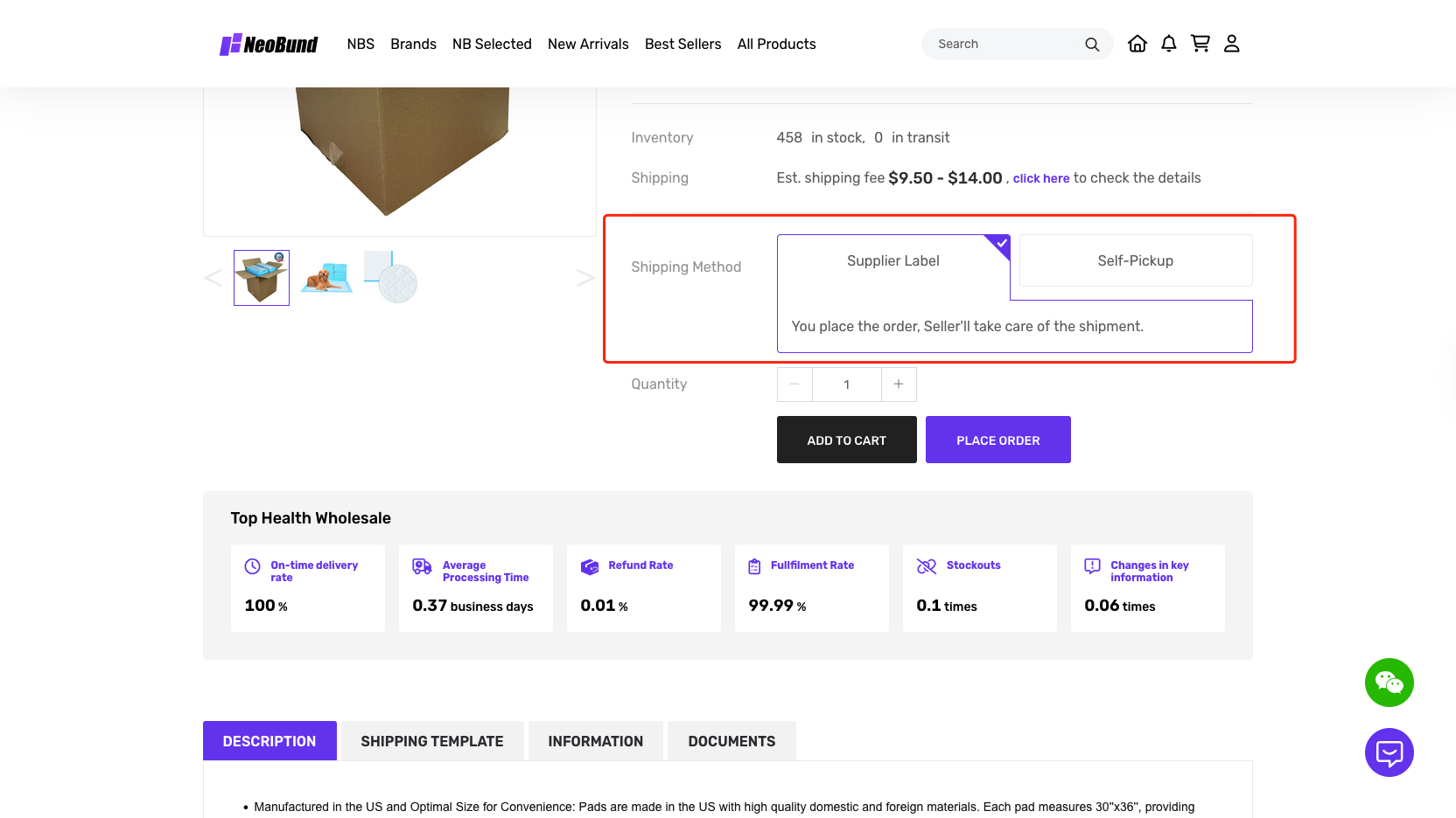 手动下单时应先选择配送方式,供应商配送(Supplier Label)或零售商配送(Self Pickup)两种配送方式。供应商配送由供应商负责发货的所有操作,零售商(您自己)配送则需要您先购买快递面单(比如TikTok官方快递面单,仅限本土店,跨境店目前不能购买)上传到订单里,供应商用您提供的快递面单发货。
